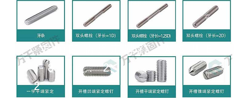 開槽和內(nèi)六角緊定螺釘,適用于不允許螺釘外露的場(chǎng)合,方頭緊定螺釘適用于允許釘頭外露的場(chǎng)合。以螺釘?shù)膲壕o力而言,開槽緊定螺釘較小,內(nèi)六角緊定螺釘次之,方頭緊定螺釘較大。錐端螺釘適用于硬度低的零件上;截錐端螺釘適用于壓緊面處制有凹坑的零件上;平端和凹端螺釘適用于硬度較大或經(jīng)常需要